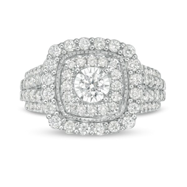 1-1/2 CT. T.W. Diamond Double Cushion Frame Engagement Ring in 10K White Gold