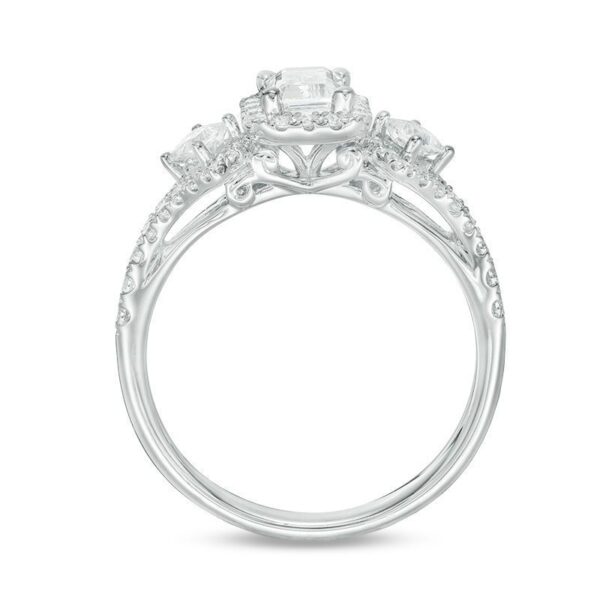 honor her with the sparkling look of this diamond engagement ring. Crafted in 14K white gold, this elegant choice features a 1/2 ct. certified emerald-cut diamond flanked by 1/10 ct. princess-cut diamonds – all boasting a color rank of I and clarity of I1. Smaller diamonds decorate the design. and set with two accent diamonds, a beautiful reminder of your promise to always be by her side. Radiant with 1 ct. t.w. of diamonds and a brilliant buffed luster, this engagement ring is a beautiful reminder of your love. This style arrives with a certificate that includes a photo and description of the diamond, which guarantees quality and can be used for insurance purposes.